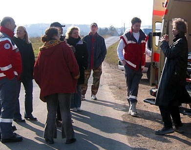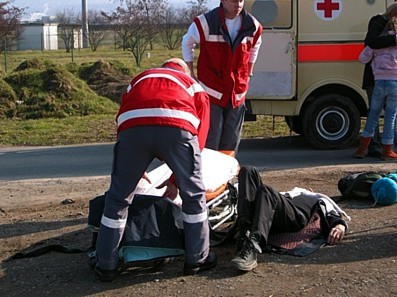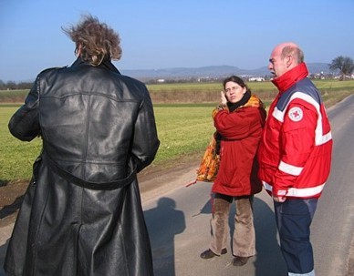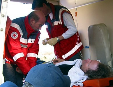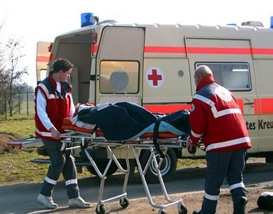 Rotes Kreuz mit Krankenwagen
