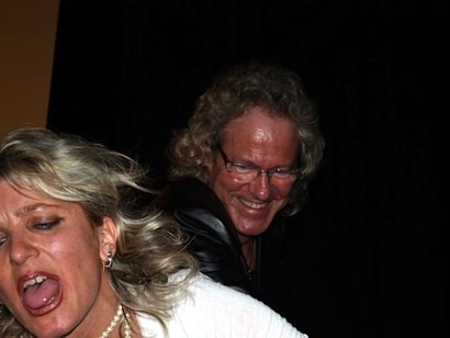 Claudia und MM albern während der Moderation auf der Bühne |